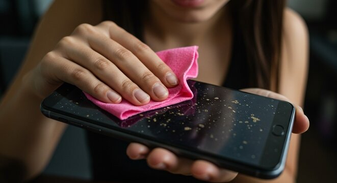 Illuminated smartphone screen touched by a woman's hand in a dark setting. modern communication concept. technology at your fingertips. AI
