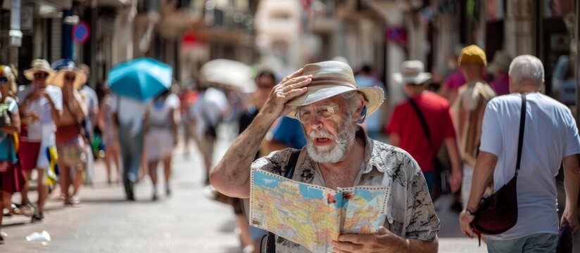 senior tourist in the city in summer