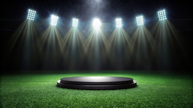 Stadium Spotlight: Black Podium on Green Soccer Grass