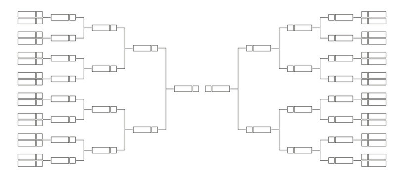Vector line or outline championship single elimination tournament bracket or tree diagram isolated on white. Fields for 32 players or teams, 16 from each side. It is suitable for all kinds of sports.