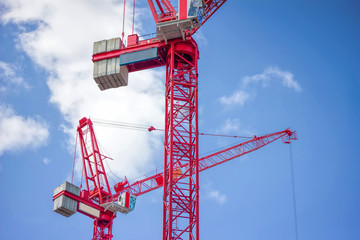 Tower crane in construction site, construction cran and crane, graphic design. Construction, building and constructing, vector design and illustration