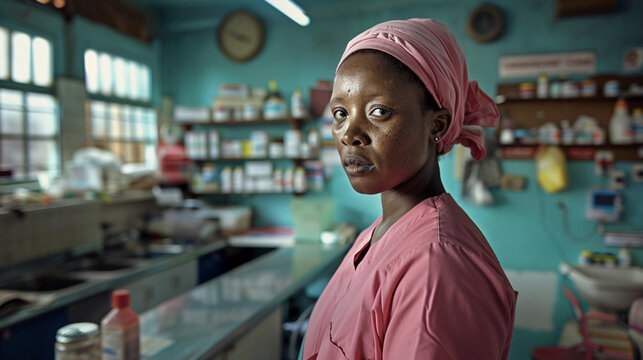 In a crowded South African township clinic; a nurse administers care with skill and compassion; vital for a community with limited access to healthcare services.