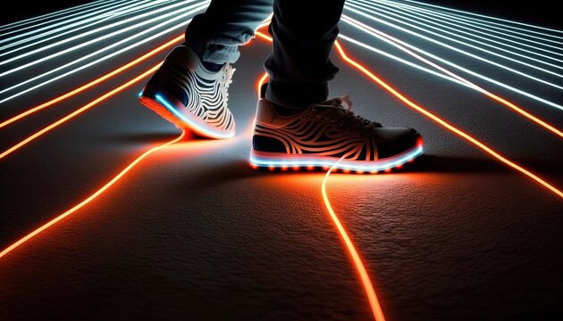 walking feet on light way, idea for Digital Footprint and Digital trace data them, background wallpaper, Generative Ai