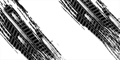 Banner with tire marks and dirt. Drag racing, drift, rally, motocross, off-road and other. Isolated tire marks on white background. Banner template with car texture tread. Vector background template