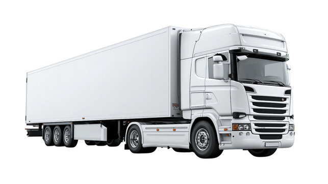 White semi trailer truck with cargo box and tractor unit isolated on a transparent background image
