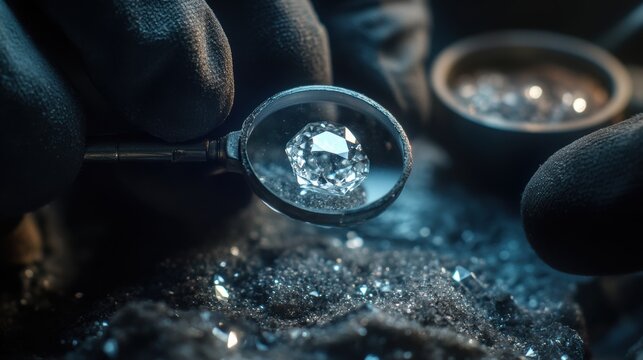 Expert jeweler carefully inspects a brilliant diamond for quality and clarity, highlighting exceptional craftsmanship in gemstone evaluation.