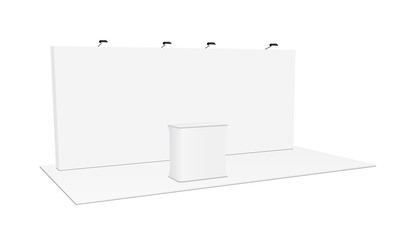 Exhibition stand for mockup and Corporate identity,Display design.Empty booth Design.Retail booth elements in Exhibition hall.booth Design trade show.Blank Booth system of Graphic Resources.3d render.
