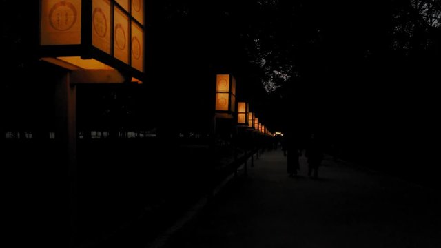Attractive Orange-Lighted Lanterns Hanging Around The Nara Park In Japan - Panning Shot