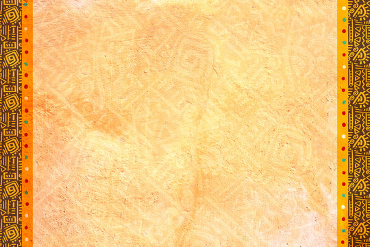 Horizontal or vertical grunge background with ethnicity ornaments and stucco texture of yellow color