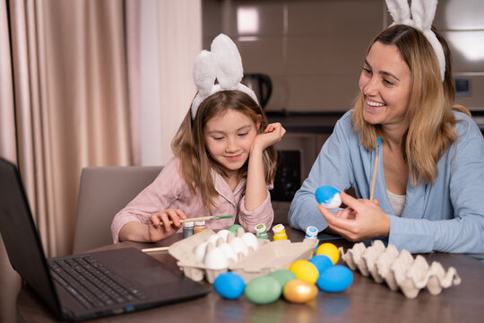 Little girls make cookies and watch TV at home on the Christmas or New Year Eve