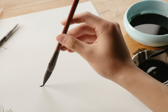 watercolor hand drawn calligraphy chinese brush set and abstract ink black.isolated on white background