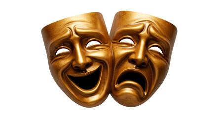 Comedy and tragedy masks representing theater arts, greek drama, acting, emotions, and human feelings on transparent background