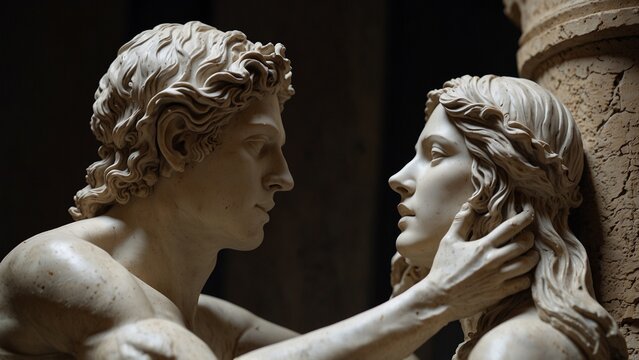 A sculpture of Orpheus and Eurydice, capturing the tragic moment he turns, losing his beloved to the underworld