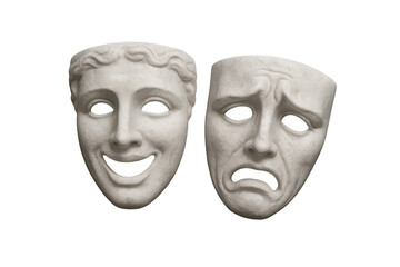 Comedy and tragedy masks representing theater arts, greek drama, acting, emotions, and human feelings on transparent background