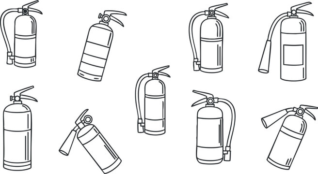 A set of fire extinguishers in simple outline vector style, ideal for safety training and emergency preparedness designs