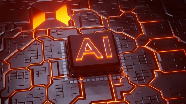 AI Processor with Glowing Circuit Board Representing GPU Model Training and Neural Processing