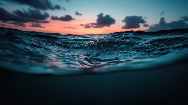 Ocean sunset paints sky with vibrant colors. Sun rays pierce dramatic clouds over calm sea. Peaceful seascape offers sense of hope, freedom, wonder. Majestic natural beauty.