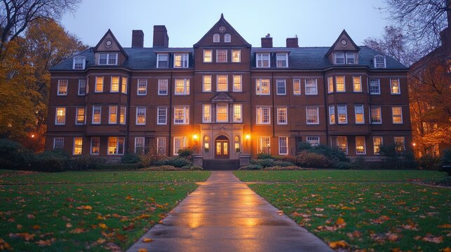 Exploring vibrant autumn colors in a tranquil campus setting with a thoughtful individual