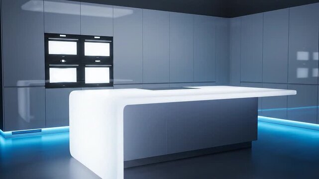 Majestic snow-capped mountains reflecting in a calm icy lake with a small cabin nestled amongst the peaks under a clear blue sky, a breathtaking winter panorama