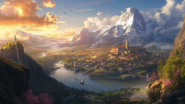 A breathtaking morning panorama showcasing cliffs, beaches, rivers, and lush greenery under a clear sky. An ideal wallpaper for a serene nature scene.