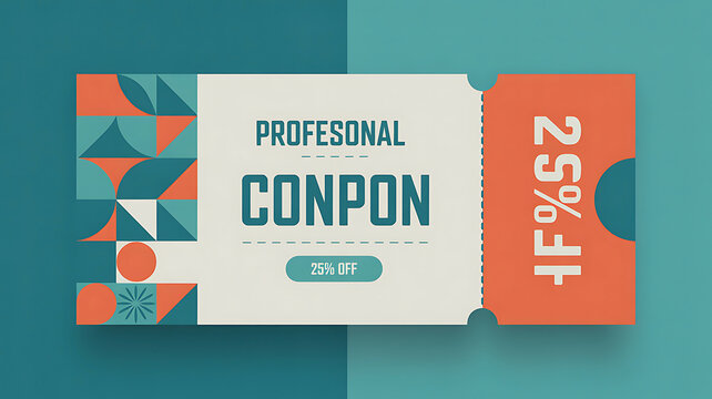 Minimalist coupon design. Clean geometric shapes in muted earth tones contrast subtly against a white background.  Simple lines and dots add visual interest. Perfect for a modern aesthetic.