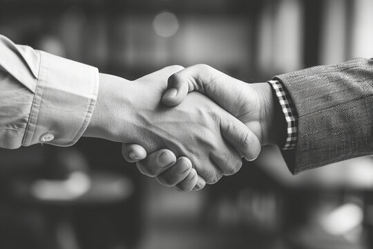 A handshake between a customer and a service provider, symbolizing satisfaction and trust in a business transaction against a plain backdrop.