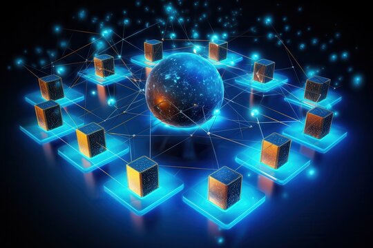 Virtual blockchain network, perfect for explaining decentralized technologies or smart contract applications