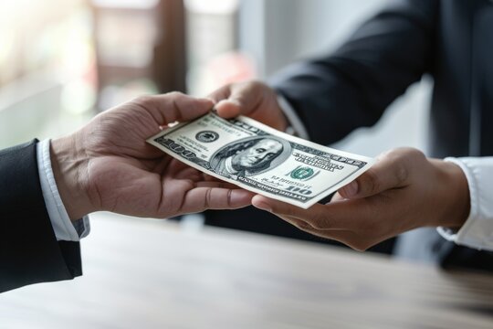 Exchanging cash in a business deal signifies trust and transaction. This image captures the moment of financial exchange. Perfect for financial themes. Generative AI