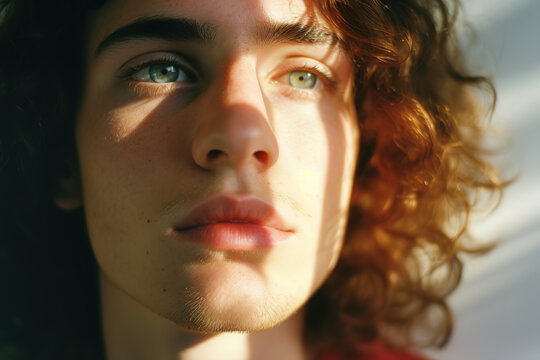 Primer plano de chico transexual mirando a la cámara con mirada y actitud empoderado. Diversidad de género.