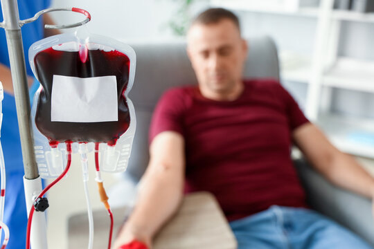 Patient getting blood transfusion in hospital clinic