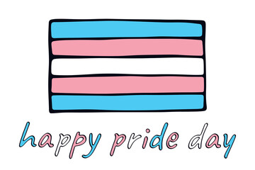 Colorful Transgender pride flag Happy pride day LGBTQ community Pride Month Vector hand drawn doodle for posters, stickers, logo, cards