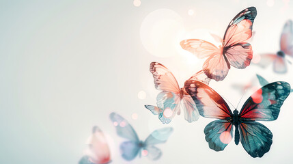 Delicate butterflies with translucent wings, soft white backdrop