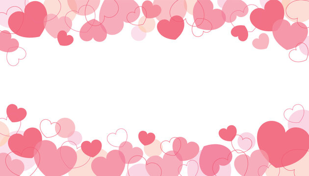 かわいいハートイラストのバナーフレーム/ピンク・透過