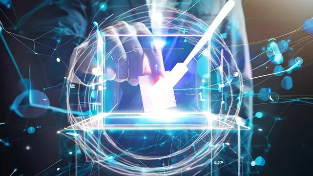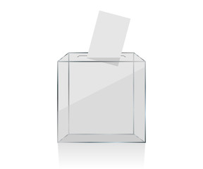 a person’s hand placing a ballot into a clear, transparent voting box, symbolizing democratic engagement and civic responsibility. close-up of person casting ballot into transparent voting box