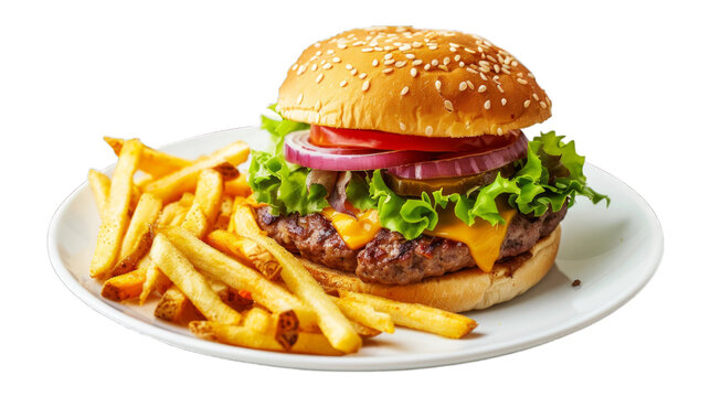 Delicious cheeseburger with fries for national burger day