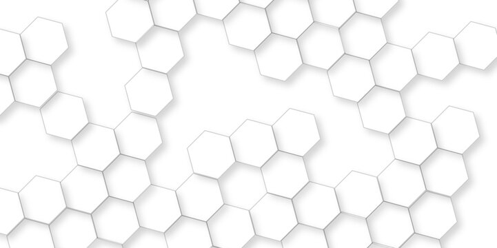 Abstract white hexagon concept background, soft white background, beautiful geometric pattern white gray hexagonal, illustration geometry science and technology.
