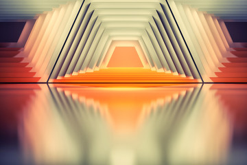 Colorful background with abstract geometric symmetrical trapezium shapes. Good for posters, brandings, placards or covers. 3d illustration.
