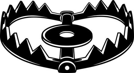 Stylized black silhouette of a bear trap or animal snare on white vector illustration