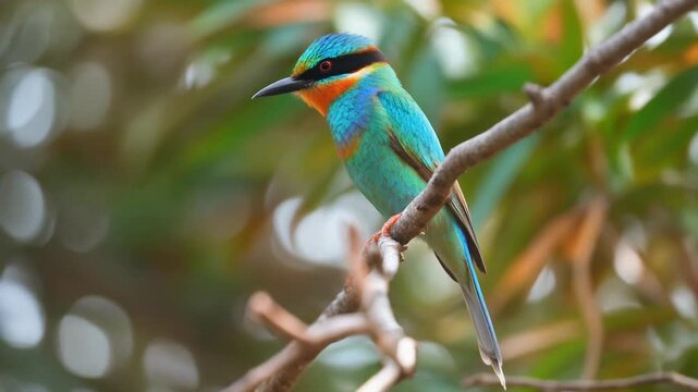 Vibrant tropical bird with turquoise and orange feathers perches on a tree branch, perfect for naturethemed articles, environmental awareness campaigns, and exotic travel promotions