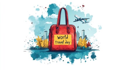 World Travel Day social media post template vector illustration with travel bag, plane and text, for instant promotional content