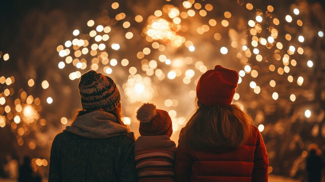 family watching fireworks on christmas night