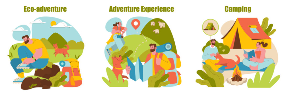 Eco-Adventure Camping Experience Vector Illustration Set