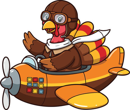 Cartoon Turkey Pilot Flying an Orange Airplane aviation