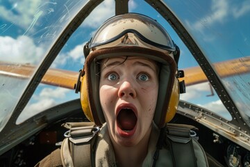 Vintage Aviator with Leather Jacket and Biplane – Retro Pilot Portrait in Outdoor Airfield Setting