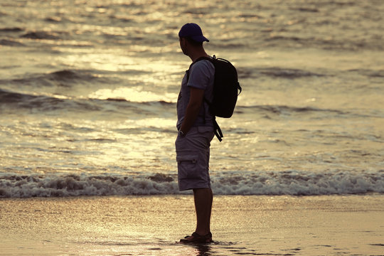 man on the beach in india, ocean, coast, vacation. rest on goa