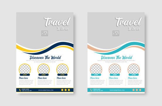 Vacation travel tour agency flyer template design layout. Summer and holiday traveling business advertisement a4 brochure flyer or poster vector template design.