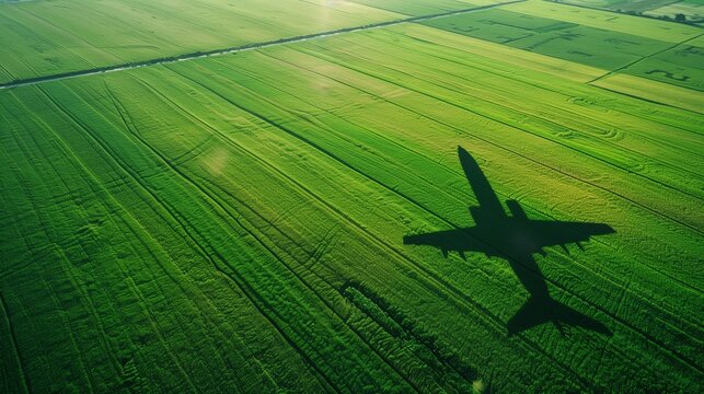 Conceptual image of green, eco-friendly fuel for aviation, symbolizing the sustainable future of air travel with a focus on environmental conservation.