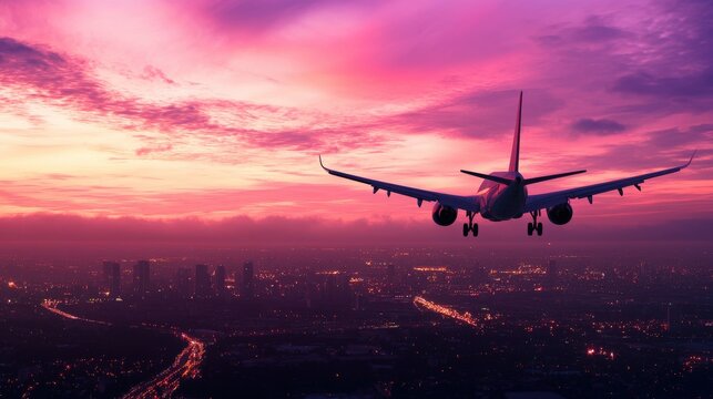 Aerial view of an airplane flying over the deep ocean, illuminating the city grids below