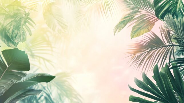Lush Tropical Paradise: Palm Leaves, Sunlight, and a Blank Circle Frame for Your Design