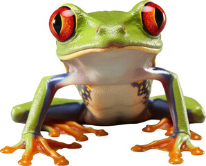 A green exotic red-eyed tree frog from the tropical jungle isolated on white background as transparent PNG, generative AI animal